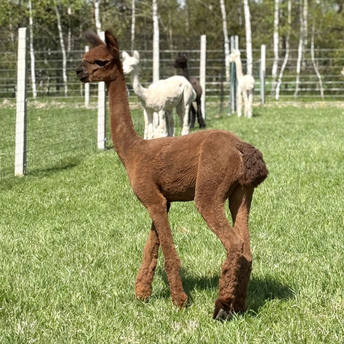 Po matce wywodzi się z rodziny wyjątkowo łatwej w rozrodzie (mama, babcia i starsza siostra to samice, które szybko zachodzą w ciążę, każdego roku mają potomstwo, rodzą i odchowują cria samodzielnie).